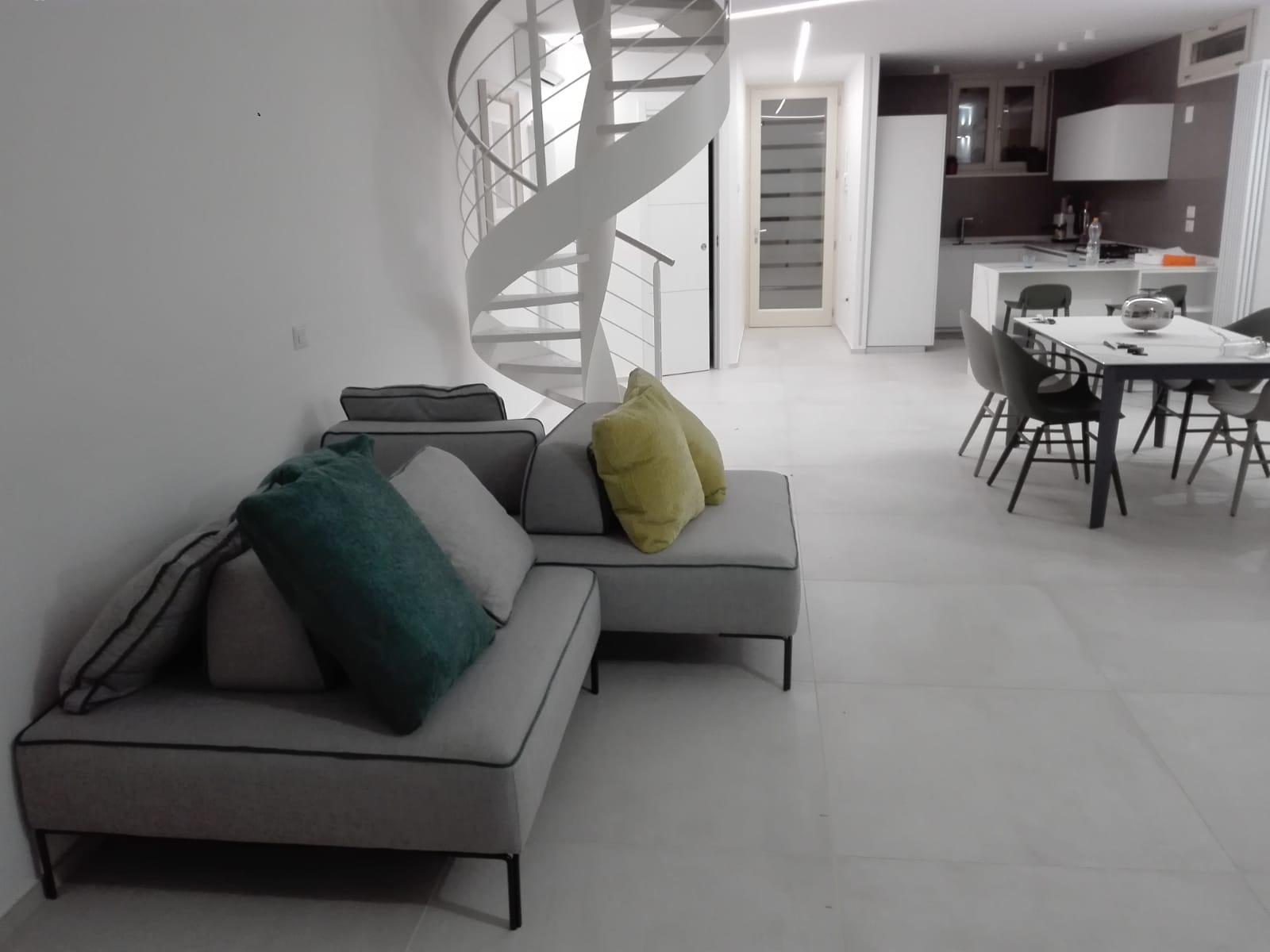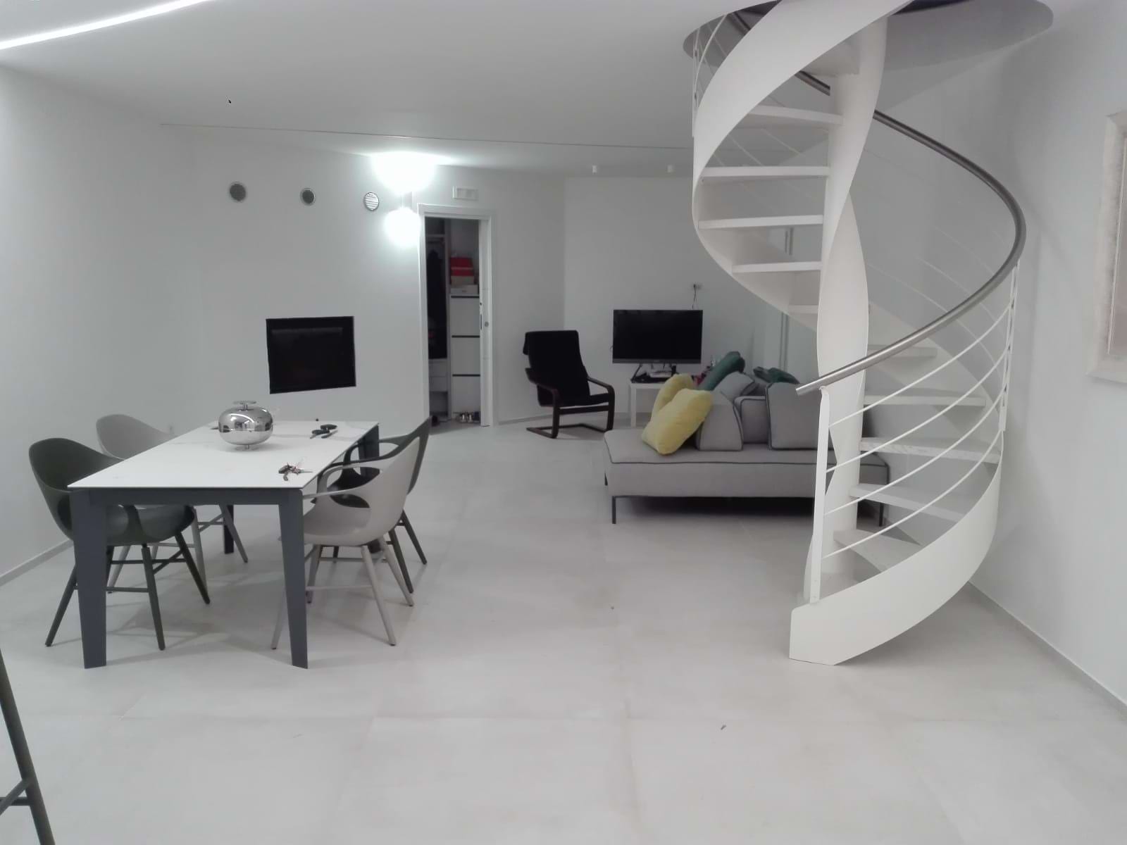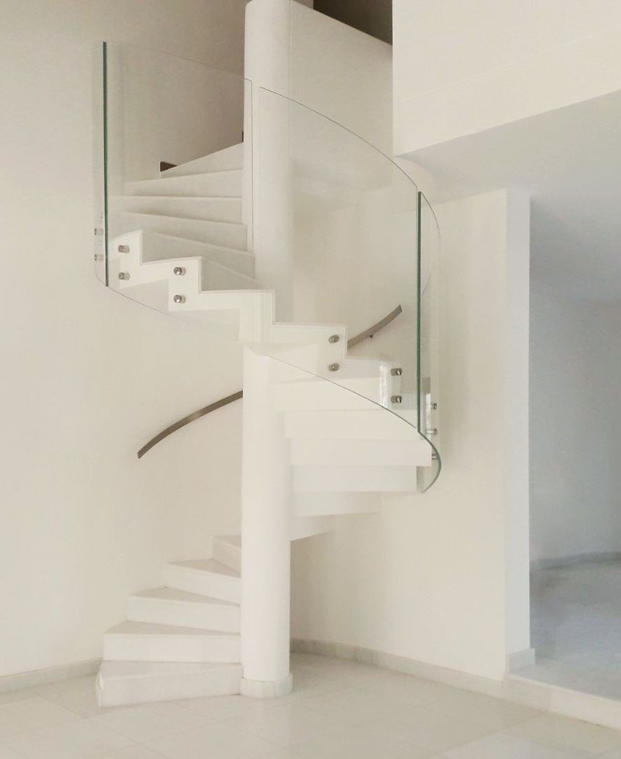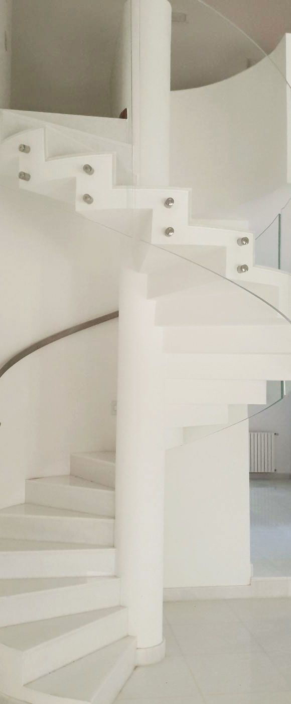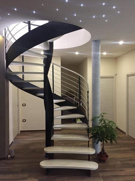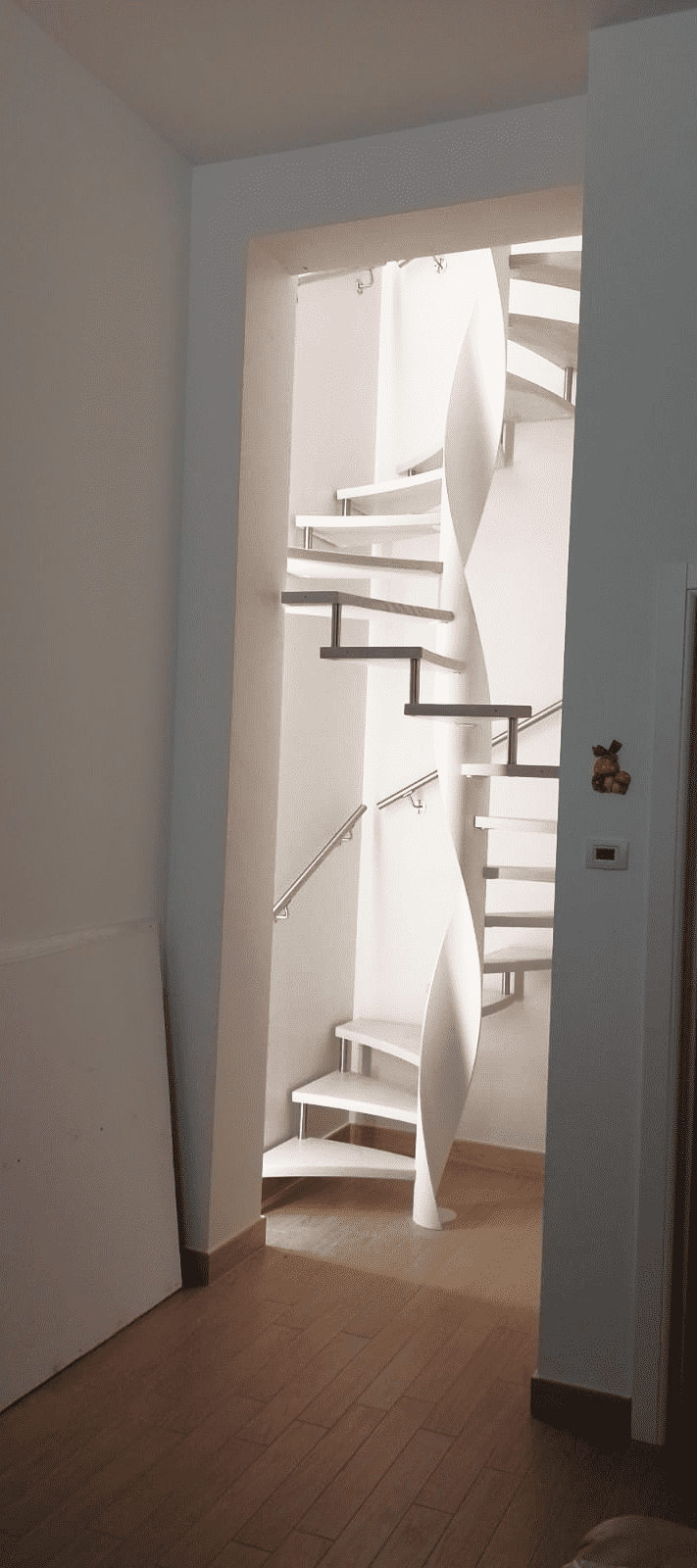 Scala a chiocciola dalle linee moderne, con pianta a base rotonda.